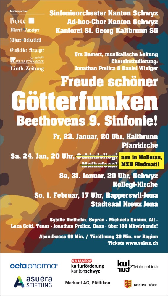 Wichtige Änderung: Neuer Spielort! Das Konzert am 31. Januar findet neu in der Kollegi-Kirche in Schwyz statt (nicht im Mythenforum).